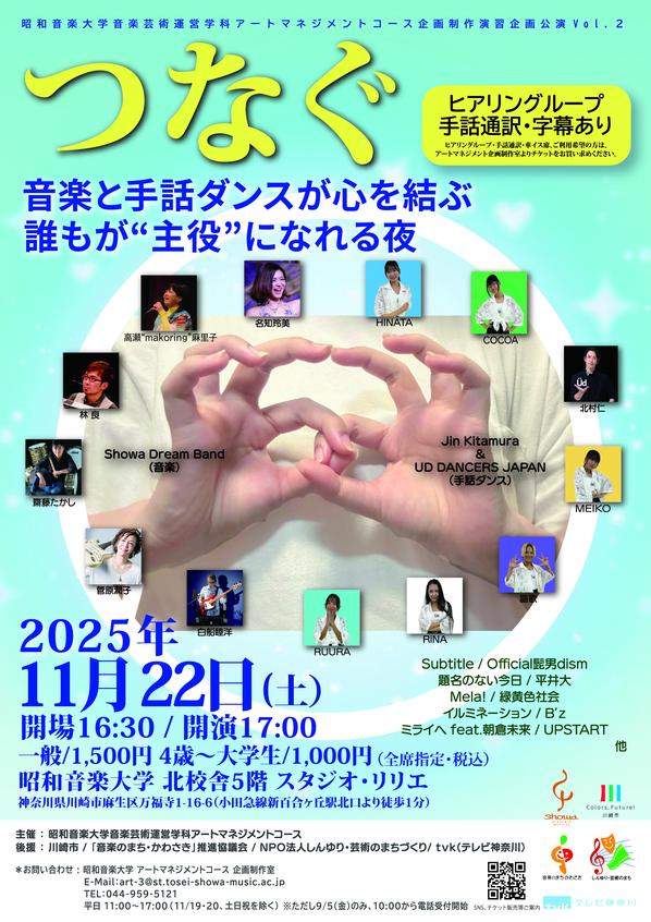注目は、手話ダンスで人々とつながる場を作る「北村仁&UD DANCERS JAPAN」と、本学教員により特別結成された「Showa Dream Band」のパフォーマンス!