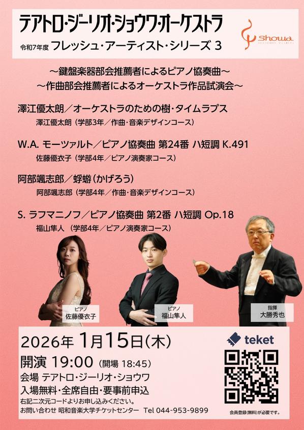 2026/01/15(木)時間:開演19:00(開場18:45)場所:テアトロ・ジーリオ・ショウワ演奏会/公演