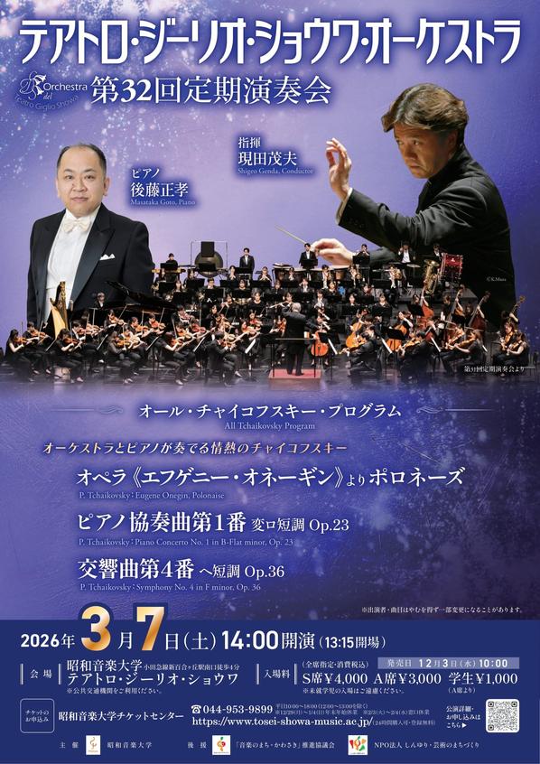 2026/03/07(土)時間:開演14:00(開場13:15)場所:テアトロ・ジーリオ・ショウワ演奏会/公演