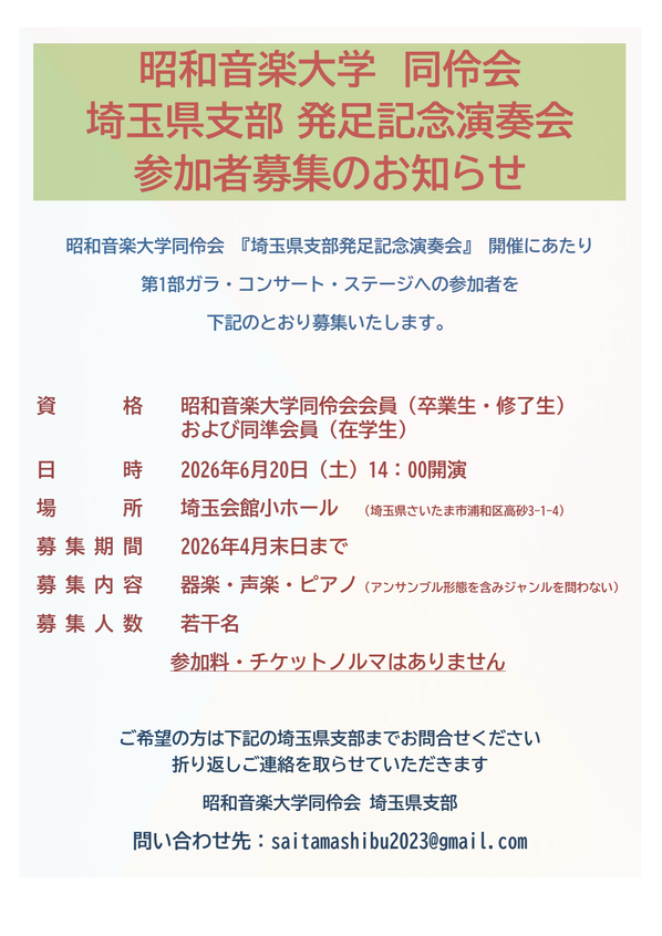 近年では、大学と同伶会が協同で設立した音楽企画・制作会社(株)プレルーディオも卒業生の演奏機会を積極的に支援しています。