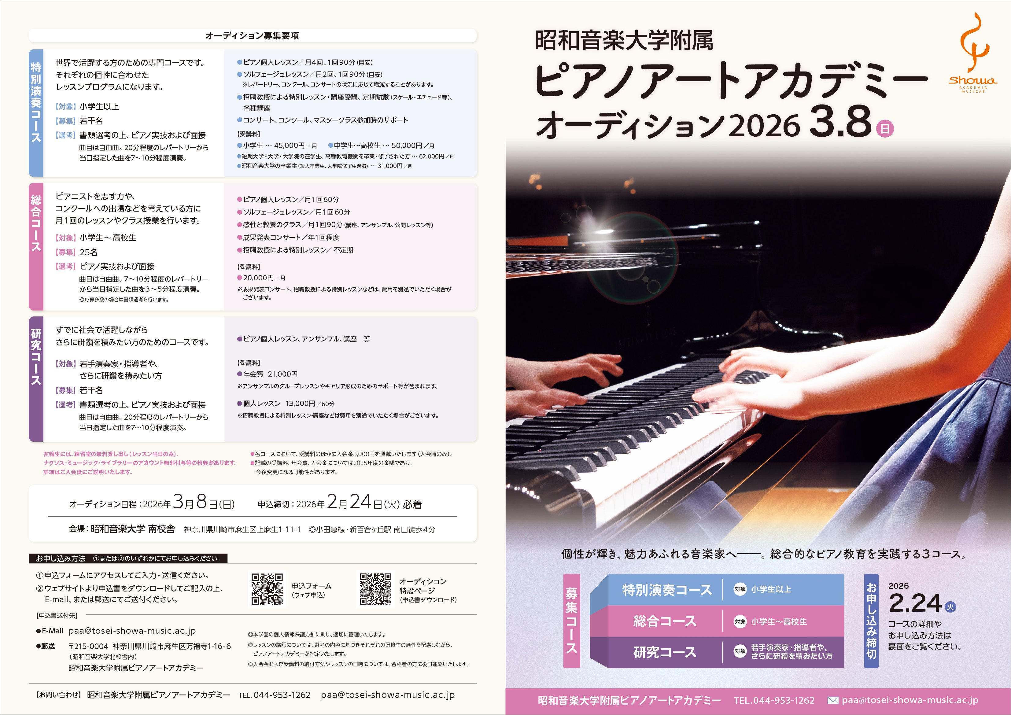 昭和音楽大学附属ピアノアートアカデミー 『ピアノアートアカデミーオーディション』係宛