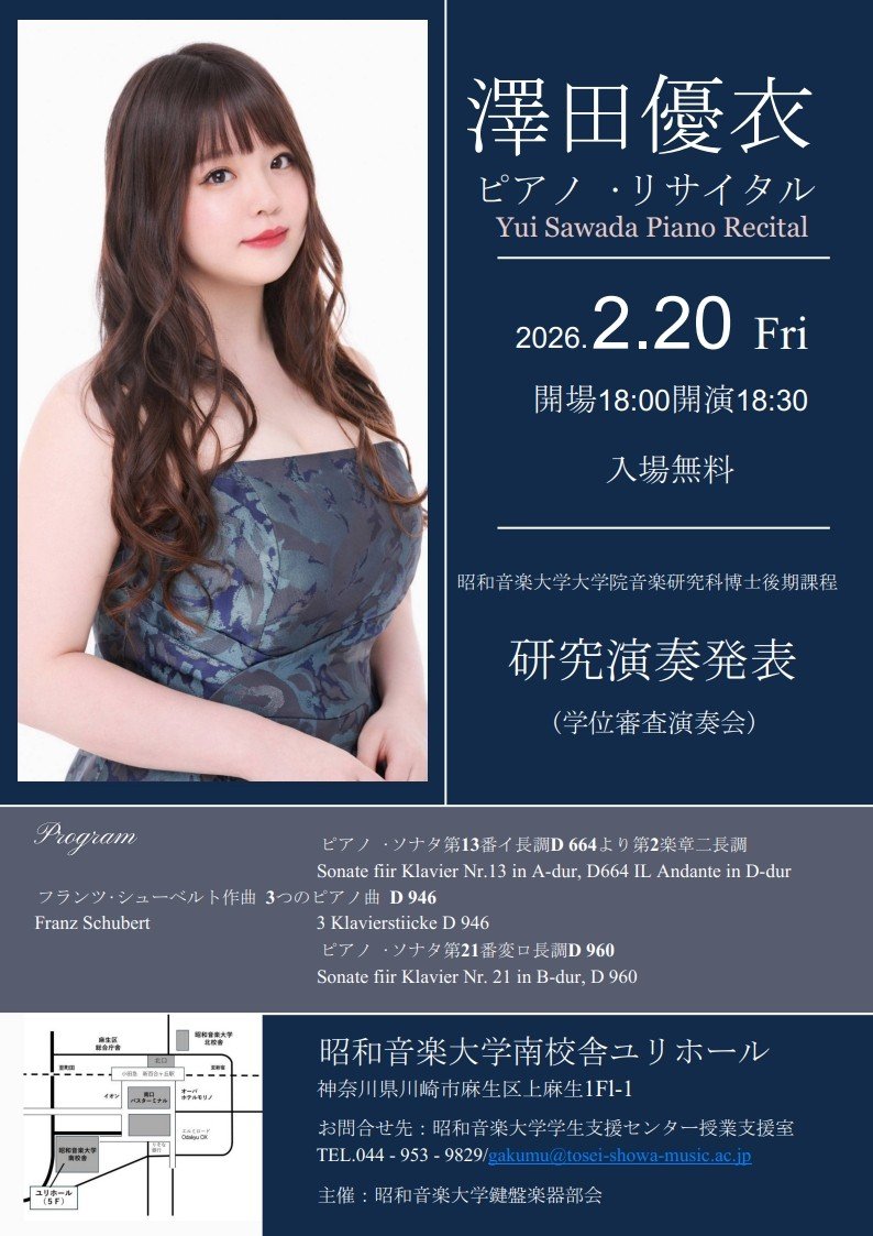 博士後期課程学位審査に関連して、公開で実施される演奏会等の情報をお知らせします。