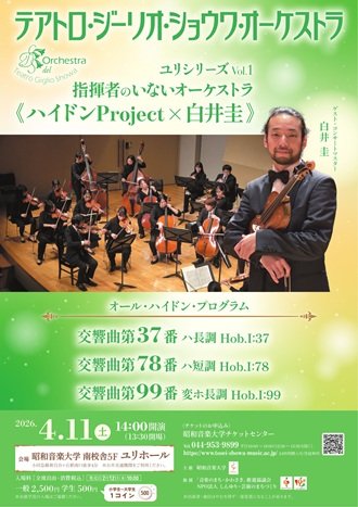 国際的ヴァイオリニストの白井圭氏をコンサートマスターに迎えお贈りする、《ハイドンProject×白井圭》全3回公演の第1弾。